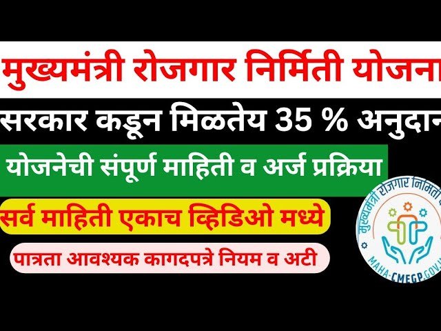 CMEGP महाराष्ट्रातील सुशिक्षित तरुण-तरुणींना नोकरीच्या मागे न धावता स्वतःचा व्यवसाय सुरू करून आत्मनिर्भर बनवण्यासाठी महाराष्ट्र शासनाने ‘मुख्यमंत्री रोजगार निर्मिती कार्यक्रम’ (Chief Minister’s Employment Generation Programme – CMEGP) ही एक महत्त्वाकांक्षी योजना आणली आहे. या योजनेद्वारे, नवीन उद्योग सुरू करणाऱ्या तरुणांना बँक कर्जावर मोठ्या प्रमाणात अनुदान (subsidy) मिळते, ज्यामुळे त्यांना व्यवसाय उभारणीसाठी आर्थिक बळ मिळते.